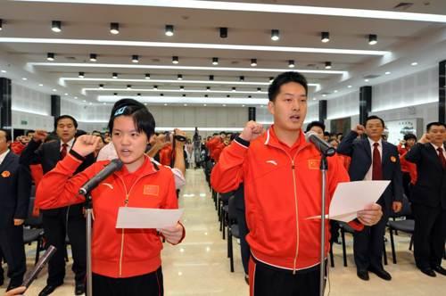 圍棋棋手常昊九段與國際象棋世界亞軍侯逸凡作為代表,帶領(lǐng)中國體育代表團全體成員面向國旗向祖國和人民作了莊嚴(yán)宣誓。