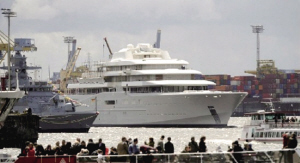 切爾西老板阿布拉莫維奇花巨資打造的世界最大私人游艇“日蝕”號正式下水,明年“超級球迷”阿布將乘著它前往南非觀看世界杯。長度達159米的“日蝕”號全副武裝,“它永遠不可能被任何武器擊沉,即便碰到兇悍的索馬里海盜也不在話下”,建造它的專家宣稱。