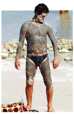 意大利南部小城大多有水溫從32到37攝氏度不等的溫泉,這些景點專門提供一些泥浴治療服務。來這里享受休閑的卡佩羅及其妻子就這樣一不小心落入了記者的鏡頭。與比賽場邊的威嚴姿態大相徑庭,鏡頭前只穿了一條黑色泳褲的卡佩羅從頭到腳、甚至包括臉部都涂滿了深灰色的泥漿,要不是那一頭標志性的卷發,意大利人的身份還真有些難以“識別”。身邊的勞拉更將泥漿涂抹得辨別不出了比基尼的花色。低頭看看自己身上的“作品”還算令人滿意,63歲的卡佩羅于是走到勞拉身邊,和自己的老婆開起了玩笑。
