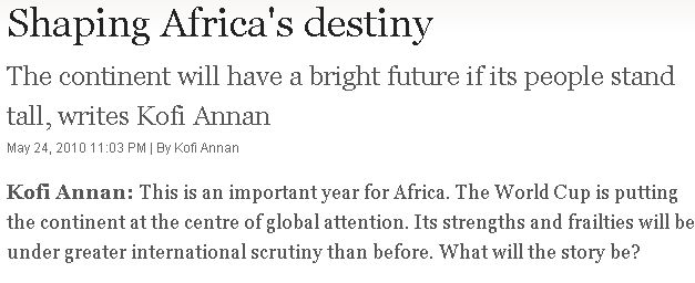 安南撰文談世界杯給非洲帶來的契機