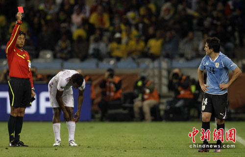 第79分鐘,馬盧達橫向帶球之后一腳遠射,偏的不多頗具威脅。第81分鐘,場上風云突變。替補登場的洛德伊羅放倒并踩踏薩尼亞,吃到第二張黃牌之后被紅牌罰下,這也是本屆世界杯的第一張紅牌。值得一提的是,烏拉圭隊是世界杯預選賽中吃黃牌最多的球隊,共吃到55張,而本場比賽余下的時間他們只能以10人應戰。