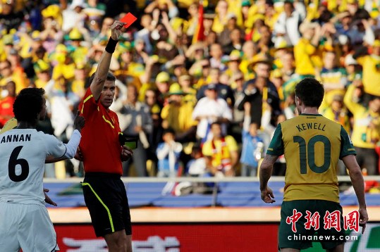 中新社勒斯滕堡6月19日電 首場慘敗的澳大利亞隊今天迎戰小組賽首輪唯一取勝的非洲球隊加納,在主力前鋒科威爾被罰下場的不利局面下,他們堅守住了1比1平的戰果。