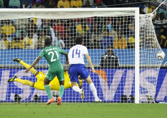 下半場剛開始3分鐘,韓國隊再次在左路發動進攻,希圖在本方禁區前撞倒了樸周永。樸周永親自主罰任意球,他踢出的皮球從人縫中穿過,在草地上彈了一下后竄入尼日利亞隊的球門。尼日利亞隊門將恩雅瑪雖然做出了判斷,但因為視線被擋撲救不及。這也是本屆世界杯的第一個直接任意球得分。