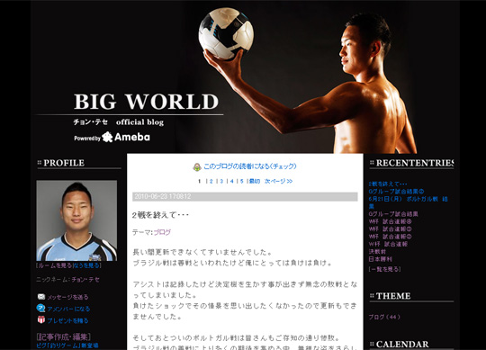 中新網6月25日電 據韓國媒體JES報道,“人民魯尼”鄭大世(27歲)在自己的博客上留下了自己對于慘敗葡萄牙的感受。6月23日下午,鄭大世在博客上刊登了題為《結束第二戰》的文章。