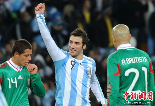 中新網(wǎng)6月28日電 今天凌晨2:30,南非世界杯1/8決賽再賽一場(chǎng),阿根廷隊(duì)在約翰內(nèi)斯堡的足球城球場(chǎng)迎來(lái)了墨西哥隊(duì)。憑借特維斯一個(gè)明顯越位進(jìn)球首開(kāi)紀(jì)錄,隨后伊瓜因和特維斯各進(jìn)一球,以3-1擊敗墨西哥,晉級(jí)八強(qiáng)。