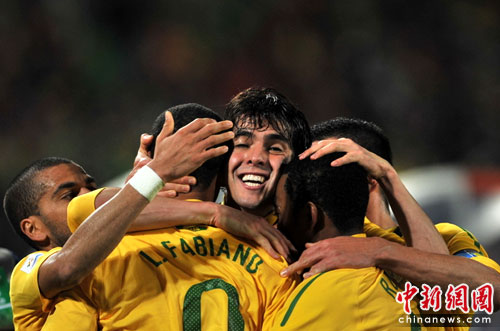 中新網(wǎng)6月29日電 今天凌晨2:30,南非世界杯1/8決賽再戰(zhàn)一場(chǎng)。奪冠熱門巴西隊(duì)在約翰內(nèi)斯埃利斯公園球場(chǎng)迎來(lái)了南美兄弟智利隊(duì)。最終憑借胡安和法比亞諾的在上半場(chǎng)的進(jìn)球、羅比尼奧下半場(chǎng)錦上添花,巴西隊(duì)以3-0淘汰智利,晉級(jí)八強(qiáng)。