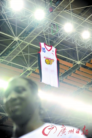 儀式開始前,積臣和宏遠集團公司董事長一起拉下了遮簾,他的15號球衣在東莞體育館上空高高掛起,這是5冠王俱樂部第一件退役的球衣。