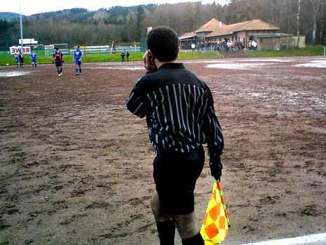 在德國地區聯賽的一場塞森聯隊對陣耶施泰特隊的比賽中,現場觀眾拍下了令人吃驚的一幕:一名邊裁一手拿著旗幟,另一支手卻在打手機!據悉,這樣的場景在這場比賽中多次出現。聯想到歐洲警方開展的“查賭風暴”,有人懷疑,這名邊裁參與了賭球。