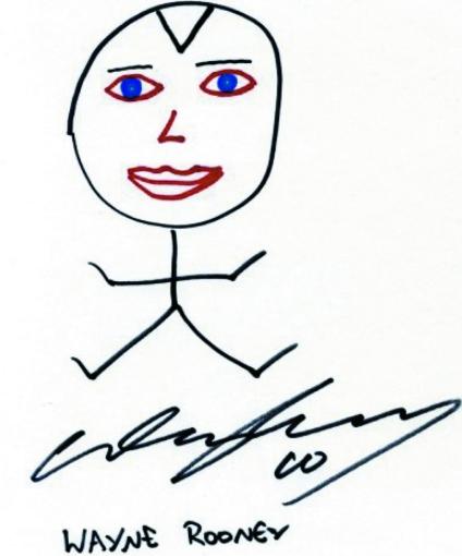 得益于此本畫冊,我們見識到了心目中的球星們在綠茵場上無法看到的另一面,在藝術的畫筆之下,他們為自己勾勒出的線條簡單而富有情趣。更為惡搞的是,《每日郵報》還邀請了英國筆相家解讀球員們自畫像所蘊含的心理涵義。著名的筆相學家艾瑪·巴琦對魯尼的作品給出了很高的評價:“我真沒想到像他這樣的超級巨星也能畫出畢加索式的肖像,從他的畫中我們都能看到一個很大的頭,大眼睛和后退的發際線,頭大身簡的構圖非常藝術。有意思的是,魯尼用藍色的畫筆畫自己的眼睛,紅色的畫自己的嘴巴,紅色的嘴巴則暗示著他崇尚著感官享受。”她的這番分析吸引了現場工作人員的竊竊私語:“天吶!他是瘋狂的縱欲者,可憐的科琳……”