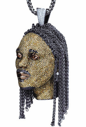 這是一個用純金和鉆石堆砌出來的奢侈品,完全按照丹尼爾斯的真人輪廓打造。美國媒體披露了這個頭像的制作過程。制作人員先把丹尼爾斯的素描輸入電腦,然后進行比例分析,之后開始制作。先用模板澆鑄出純金的頭像,然后把鉆石鑲嵌上去。
