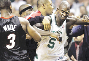 北京時間昨天,NBA季后賽一開打,就火花四濺。在凱爾特人和熱火的首場比賽中,一貫以大氣著稱的加內特,竟然引發激烈沖突,甚至連裁判都被襲擊,實在讓人不得不感嘆今年季后賽的激烈。