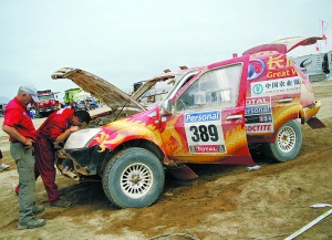 至本報昨天截稿時,中國車手除趙永國退賽外,只有金城摩托車隊的蘇文敏完成了第七賽段的艱苦比賽。而后續(xù)的情況是,汽車組威麟車隊的老將盧寧軍以10小時1分第32個完賽,成為當天汽車組中國車手中唯一沒有被罰時的人。其余3位車手因為在組委會關門時間之后才返回,均被罰12小時。在不計被罰時間的情況下,長城車隊的周勇成績是15小時08分45秒,列賽段第44。老盧的隊友江耀桓用了16小時38分11秒,賽段成績第57。興業(yè)銀行酷車時代的朱金忠用時16小時47分30秒,成績列第58位。