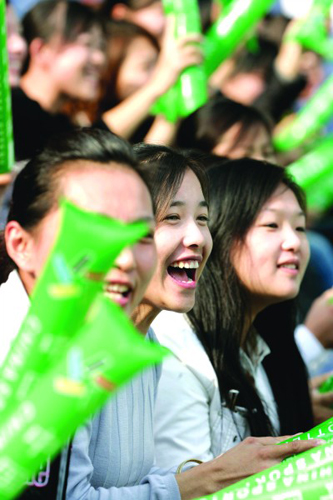 “拉拉隊志愿者并不是和外界想像的那樣一定要漂亮,關鍵是要有親和力。”張洋介紹說,因為他們的主要職責就是要帶動現場的氣氛,這需要觀眾的認可,如果讓一個不被觀眾接受的志愿者去引領,那就很難達到理想的效果。為了達到這個要求,隊員們在培訓期間每天都要對著鏡子微笑兩個小時以上。