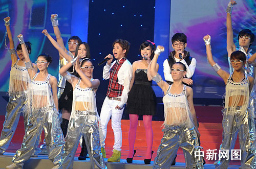 500位大學生組成的變幻方陣化身為“小光立方”,時尚動感,在晚會過程中配合舞美和演出呈現不同的圖案或LOGO。