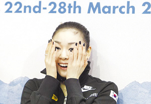 “真沒想到我的短節目會成這個樣子,”金妍兒賽后說,“我的左腳在發抖,我也不知道這是為什么。除了跳躍,其他動作我還從來沒失手過,這真是太意外了。”作為韓國第一枚花樣滑冰冬奧會金牌得主,金妍兒坦言:“冬奧會之后,我有點害怕再次參賽。冬奧會是我的目標,而我不確定自己是否可以為了世錦賽再燃斗志。”不過,金妍兒還是堅強地表示,她要忘掉昨天自己的糟糕表現,下面做到最好。“明天我會拼盡全力,因為我的斗志還很高昂。而且,明天是這個賽季最后一次自由滑。”