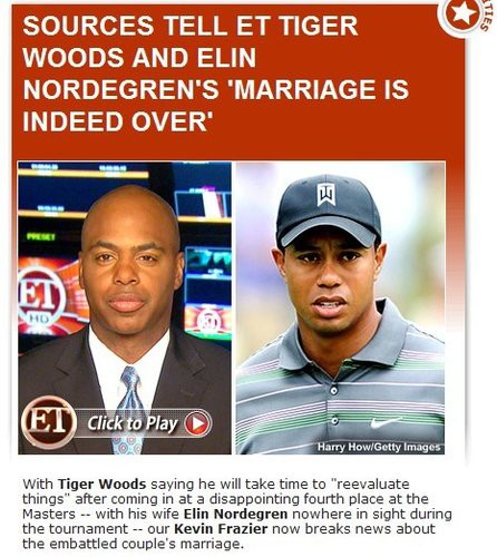 北京時間4月14日,據美國電視媒體《今夜娛樂》(Entertainment Tonight)爆料,高爾夫名將伍茲與妻子艾琳的婚姻已經走到盡頭,兩人即將簽署離婚協議。