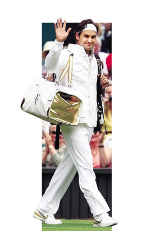 盡管在去年史詩般的決賽中輸給了納達爾,但當他的這位宿敵黯然宣布因傷退出溫網(wǎng)后,剛剛完成全滿貫榮耀壯舉的費德勒無疑成了球迷們的惟一想念之人。于是,組委會“順應(yīng)民意”的安排費德勒頂替納達爾為安裝了頂棚的全新中心球場打響今年的揭幕戰(zhàn),而當觀眾們目睹心中的偶像以吸引眼球的“時尚天王”裝扮向他們尊貴的揮手致意時,整個球場的熱度就再不曾降低過。
