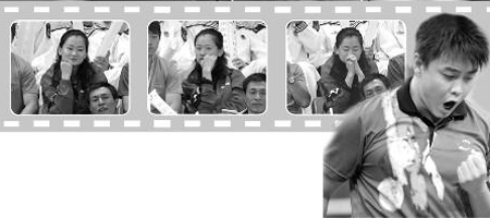 開賽后,王皓很快2:0領先,彭陸洋看得興高采烈。沒想到,馬琳迅速調整了狀態,連追兩局。第五局,王皓8:10落后,彭陸洋嚇得閉上了眼睛,不敢看比賽。過了好一會兒,她才睜開眼睛,當得知男友輸球后,顯得非常難過。