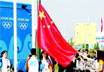 2004年8月9日,中國代表團在雅典奧運村舉行了莊嚴肅穆的升旗儀式。