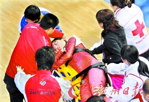 綜合《京華時(shí)報(bào)》、《今日早報(bào)》等報(bào)道,4日的全運(yùn)會(huì)短道速滑賽場上出現(xiàn)了驚險(xiǎn)一幕;在女子500米預(yù)賽中,新疆小將孔雪的脖子被冰刀劃傷,出現(xiàn)了一道6厘米長的傷口,一時(shí)血如泉涌。孔雪隨后被送往醫(yī)院縫合了14針。昨日,孔雪帶傷上陣,現(xiàn)場掌聲、加油聲此起彼伏。