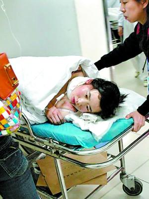 4日,孔雪所在的一組在比賽中發(fā)生了碰撞,她和另外兩名選手相撞后摔倒,另一名選手的冰刀割破了她的頸部右側(cè),當(dāng)時(shí)就流了不少血?籽┝⒓幢凰偷礁浇那噌t(yī)附院治療。據(jù)醫(yī)生介紹,她的傷口有接近無名指那么長,而且劃得很深,幸好沒傷到血管。