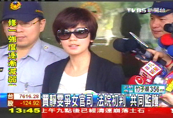 中新網9月1日電 據“聯合報”消息,賈靜雯和孫志浩的爭女監護權官司,臺北地方法院家事法庭昨天裁定,兩人共同擁有女兒的監護權,但孫志浩是主要的照顧者,可以帶女兒梧桐妹回美國生活受教育,但從2012年開始,偶數年的暑假,孫志浩必須帶女兒回臺給賈靜雯照顧,而奇數年的暑假,賈靜雯須去美國照顧女兒。