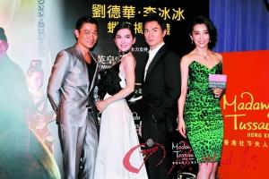 劉德華和李冰冰和兩人蠟像合影。
