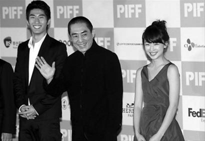 昨晚,第15屆韓國釜山國際電影節正式拉開序幕,韓國著名影星元彬、孫藝珍、全度妍等一一亮相,中國女星湯唯也以一襲優雅的香檳色長裙盡顯高貴氣質。張藝謀的新作《山楂樹之戀》在早前就被確定為電影節的開幕片,老謀子也帶著周冬雨和竇驍兩位新人現身釜山,但韓國媒體顯然對老謀子更感興趣,差點引得兩位新人冷場。