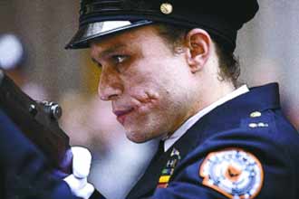 《新蝙蝠俠2:黑暗騎士》又有幾張新劇照外泄了,這次的主角是頭號反派小丑(Joker),他這次玩起了變裝游戲,當上了警察,當然這不過是他對身份的一種掩飾。扮演“小丑”的希斯·萊杰于今年1月22日意外離世,為本片抹上了些許傷感的色彩。