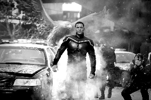 如果你帶著對好萊塢以往銀幕上的“超人”印象來與漢考克對比,那么一定會讓你大跌眼鏡,因為漢考克的出場不但邋遢得像一個流浪漢,他還是一個連飛行時都提著酒瓶子的十足的酒鬼,以及一個看到美女就會調(diào)戲一番的“流氓”。當然你也不要以為他在飛行時有多么逍遙,因為他總是會碰到一些鳥類和飛機的“撞擊”,而且他的起飛和落地完全沒有以往“超人”們固定的POSE,在行俠仗義時還總是給公共設(shè)施帶來高達900萬美金經(jīng)濟損失的破壞。