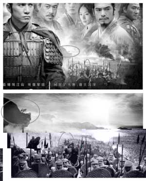 巧合的是,《赤壁》制片人張家振此前做客一網站聊天時曾表示,《赤壁》可以被看作是中國版的《300勇士》。記者從《赤壁》宣傳人員處得知,《赤壁》的官方海報均由影片出品方中影集團負責制作。