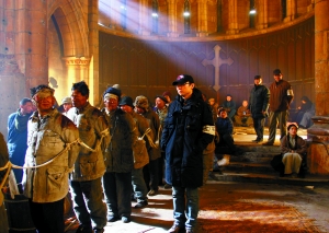陸川:屠殺部分在片中會有長達20多分鐘,這部電影中群眾演員一次性動用最多的有2000多人,特技合成后會達到2萬多人,主要都是表現屠殺和戰爭場面的。