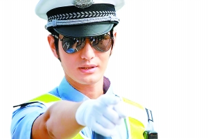 其實(shí)我覺(jué)得,現(xiàn)實(shí)生活中這是不太可能的。不過(guò),倒也蠻有意思,因?yàn)榻痪娴耐浀摹N以隈R路上路過(guò)的時(shí)候,看到交警站在馬路中間指揮交通,尤其是站天安門(mén)廣場(chǎng)指揮交通,真的非常帥非常帥,所以有很多人喜歡警察這個(gè)職業(yè),包括我在內(nèi)。我相信很多人暗地里很喜歡警察,我心里就很可以接受這個(gè)。而且,我自己演了警察,我覺(jué)得穿著警服是很帥的。