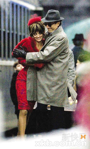 10月27日,佩內(nèi)洛普·克魯茲(Penelope Cruz)一身紅色皮毛艷裝爆乳拍攝新片《9》(Nine)。該片由羅伯·馬歇爾執(zhí)導(dǎo),是一部由同名音樂(lè)劇改編的歌舞片。當(dāng)天在片場(chǎng)出現(xiàn)的還有男主角丹尼爾·戴·劉易斯(Daniel Day Lewis),他和佩內(nèi)洛普·克魯茲上演了親密的擁抱戲。