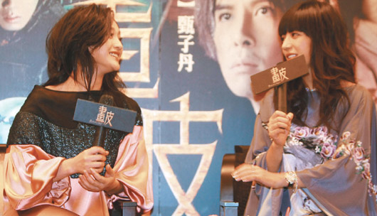 “畫皮”最精彩是一正一邪兩個女人的奪愛之戰,趙薇和周迅都強調對搶男人沒興趣,趙薇說:“每個年紀我的愛情觀不同,現階段的我,學著瀟灑,不喜歡去搶,成全人家。”周迅聽了頻點頭。