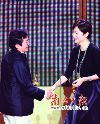 魏德圣獲得年度臺灣杰出電影工作者獎,頒獎人林青霞表示祝賀。