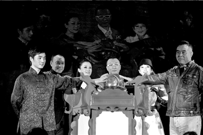 陳凱歌率領(lǐng)章子怡等主創(chuàng)向影迷鞠躬致謝。主創(chuàng)們一起點(diǎn)燃了寫有“梅蘭芳華”字樣的宮燈,寓意影片票房更加紅火。