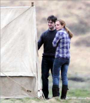 雖然《哈利·波特》第6集今年7月才會(huì)上映,但是結(jié)局篇《哈利·波特7》已經(jīng)開(kāi)始熱拍。劇組最新拍攝的,是“哈利·波特”丹尼爾與“赫敏”艾瑪在蘇格蘭荒野帳篷外的場(chǎng)景,另一位主角“羅恩”還沒(méi)有出現(xiàn)。從片場(chǎng)照片以及小說(shuō)情節(jié)推斷,丹尼爾與艾瑪拍攝的是他們逃亡在外、風(fēng)餐露宿的場(chǎng)面,“羅恩”魯伯特則因?yàn)槟承┰驎簳r(shí)離開(kāi)了他們。當(dāng)日的拍攝進(jìn)行得還算順利,想必丹尼爾與艾瑪再次演繹起這兩個(gè)已經(jīng)陪伴了自己近九年的角色,早已駕輕就熟。《哈利·波特7》全名為《哈利·波特與死亡圣器》,這一集電影將一分為二,上部于2010年11月19日上映,下部于2011年7月15日上映。