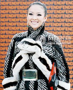 章子怡出席服裝春夏秀 巨鉆粗腰帶亮相長城(圖)(2)