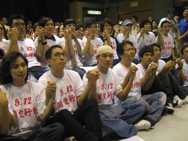 中新網5月16日電 中國四川省汶川縣遭遇特大地震災害,震動波及半個亞洲,數以萬計民眾罹難,災情牽動神州大地, 牽動全世界關注的目光。香港演藝人協會、香港無線電視、亞洲電視、香港電臺、鳳凰衛視、新城電臺六間機構共同組織“一方有難,八方支持”行動,香港媒體及演藝界人士積極響應,15日深夜,兩百多位歌、影、視藝人及媒體從業人員齊聚香港電臺,參與大合唱錄音,為四川地震災民祈福、加油、打氣。