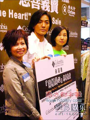 昨日,張雨綺在北京某商場義賣愛心T恤,所有收入將捐給災區。