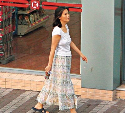 前日下午5時半左右,不施脂粉的藍潔瑛身穿白色緊身T恤、長裙,腳踏拖鞋,獨個兒離開愛澤樓寓所,前往附近的便利店購物,見她兩邊頭發斑白,樣子頗為憔悴。
