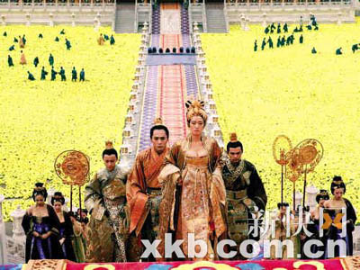 昨日上午11點,第17屆金雞百花電影節新聞發布會在大連的富麗華酒店如期舉行,來自全國各地的百余家媒體記者們都齊聚一堂,聽電影節組委會關于提名影片規則方面的老調重彈。正當大家都有點昏昏欲睡的時候,一位來自吉林某電視臺的記者突然提出了一個問題:“為什么讓大眾評委觀摩的影片由最初決定的10部變成了9部,獨獨缺了《滿城盡帶黃金甲》(以下簡稱《黃金甲》)?”臺下的記者們聞言頓時議論紛紛,而臺上的電影節領導們也都表現得十分意外,由此引發了電影節開幕最大的話題——《黃金甲》為何退賽了?