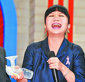 陶晶瑩開始休產(chǎn)假 獲電視臺老板送擠奶器(圖)