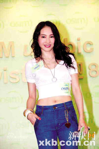 3月19日,黎姿與奧運金牌得主李麗珊等出席活動,粉紅短上衣加牛仔褲,看起來很運動、很青春。