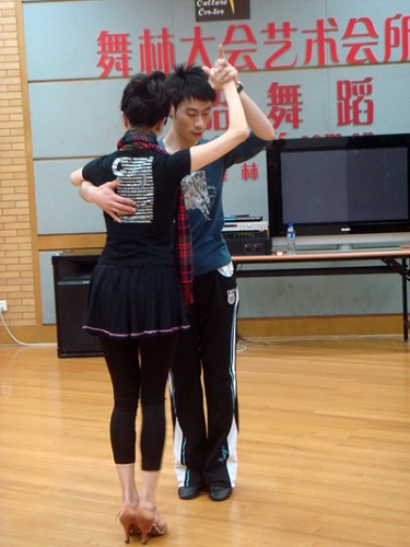 低調黑色T恤,淋漓盡致的刻畫出優雅的女人味。高高扎起的發髻令身材更顯挺拔。她更堅持穿上高跟鞋進行排練,性感窈窕的身材在旋轉舞池中更為魅惑。