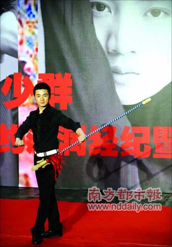 而總裁常繼紅則為剛“進門”的余少群送上了超大厚禮,她現(xiàn)場宣布,海潤的大老板從國外打來電話,宣布余少群將成為海潤明年的“反武俠”戲《蓋世匹夫》的男一號,而另一部中日合拍的年代戲也將由余少群主演,同時還在為他談幾部戲。常繼紅承認(rèn)自己是在《梅蘭芳》中發(fā)現(xiàn)了余少群,她也表示要力捧余少群成為大明星,“前有劉燁,后面就看余少群的了!”