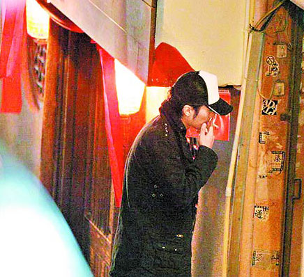 謝霆鋒慶功宴中途跑出來抽煙。