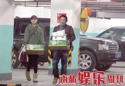 去年10月中旬媒體爆出張黎與結(jié)婚三年的明星妻子劉蓓正式離婚,而被派領(lǐng)“第三者”之名的則是與張黎剛剛合作百集電視劇《中國往事》的小宋佳,面對炒得沸沸揚揚的緋聞張黎不做回應(yīng),小宋佳則斥之以“胡扯”。后來,兩個月之后,張黎和小宋佳卻被我們周刊拍到兩人親密逛街,后來還一同回家,當天張黎身上的這件羽絨服與宋佳的那件是同一個牌子,兩人前后腳一同把在超市買回來的“戰(zhàn)利品”抱回家,狀甚甜蜜。