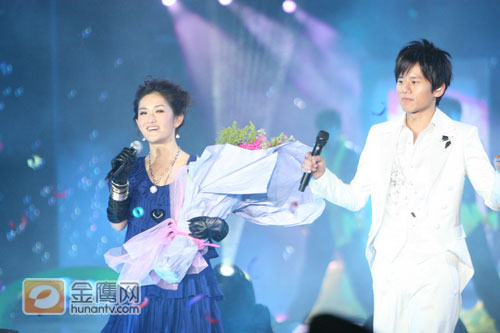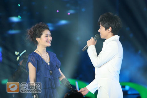 湖南衛視12月31日的跨年演唱會上,經過主持人何炅的一番調侃之后,備受期待的張杰和謝娜的對唱《明天過后》終于登場了,張杰一身白色西服登場,頗有白馬王子的風范,而一向敢說敢做的謝娜在張杰的身邊則顯得小鳥依人,當張杰主動拉起她的手時,更是羞得滿臉通紅。一首《明天過后》被張杰和謝娜唱得柔情蜜意,尤其是四目相對時,更是閃現著無數的火花,被主持人何炅調侃像一個婚禮一樣。